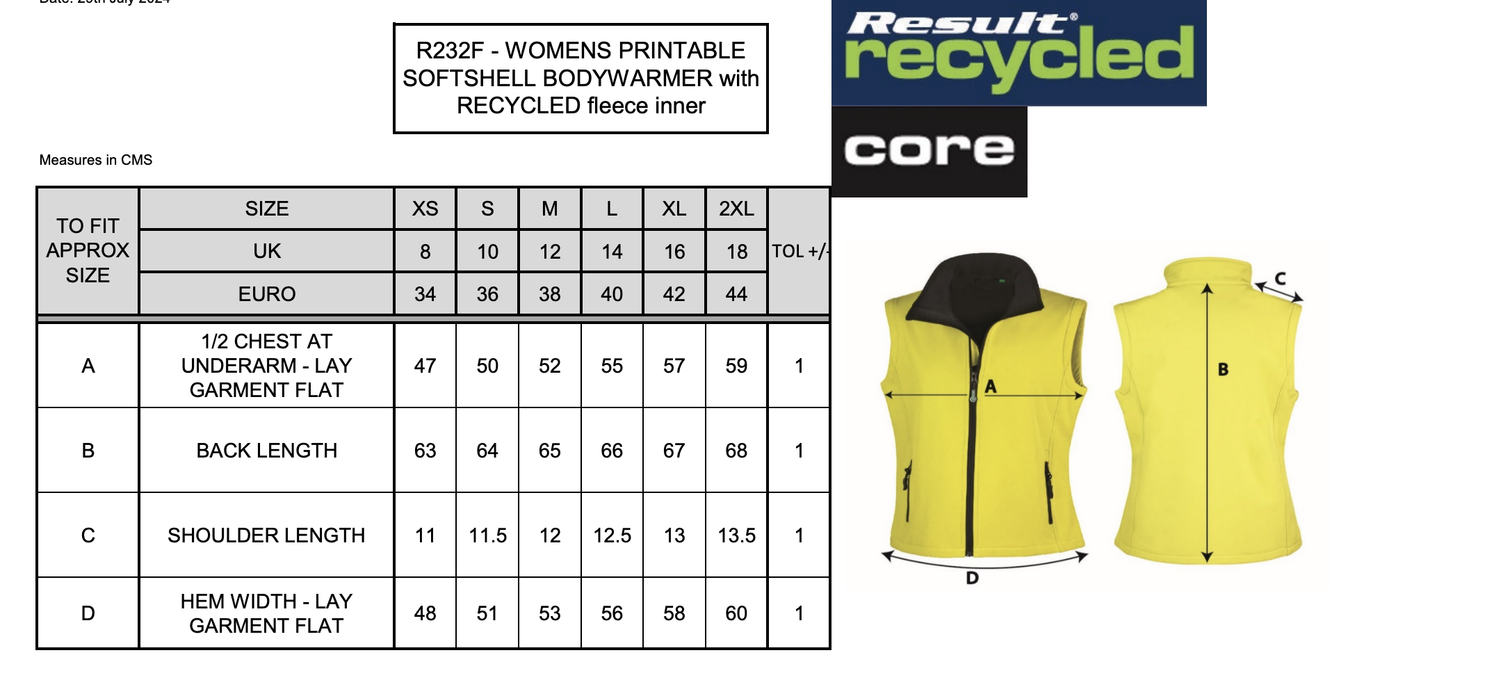 | B - Back Length | 63cm | 64cm | 65cm | 66cm | 67cm | 68cm |
